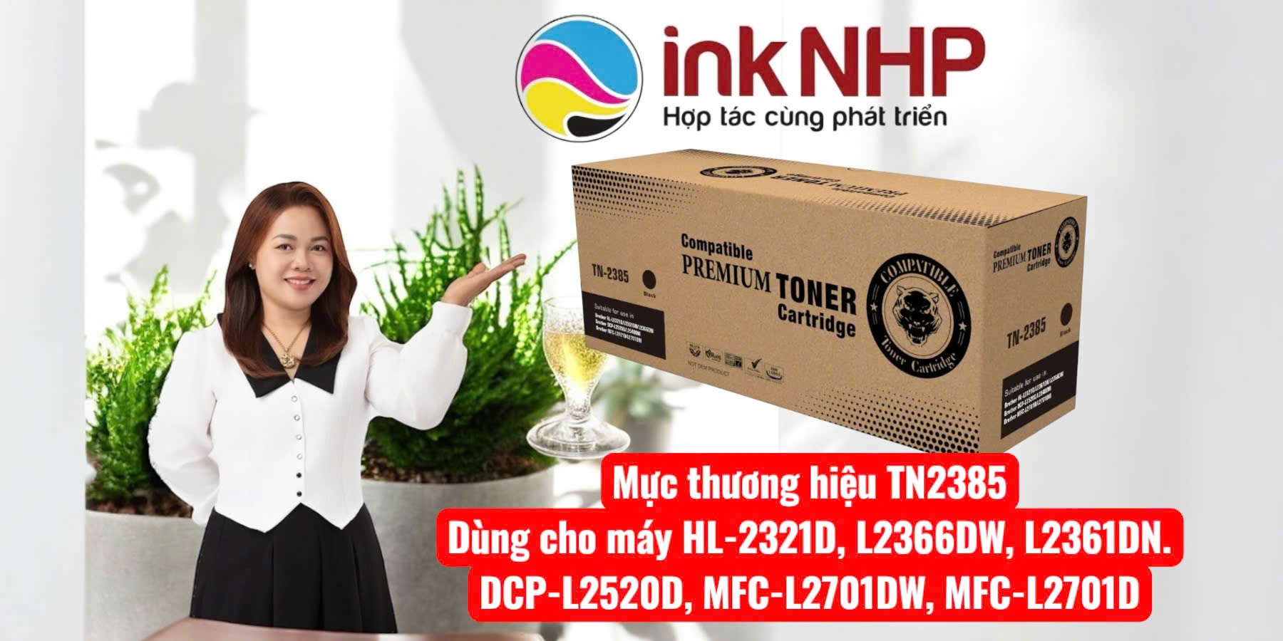 Mực in Brother TN2385 là dòng mực laser đen trắng được sử dụng phổ biến cho nhiều model máy in Brother văn phòng. Tháng 09/2025, Mực in Nguyễn Hợp Phát xin gửi đến quý khách hàng bảng báo giá mực Brother TN2385 mới nhất, đảm bảo hàng chính hãng 100%, giá cả minh bạch và nhiều ưu đãi khi mua số lượng.