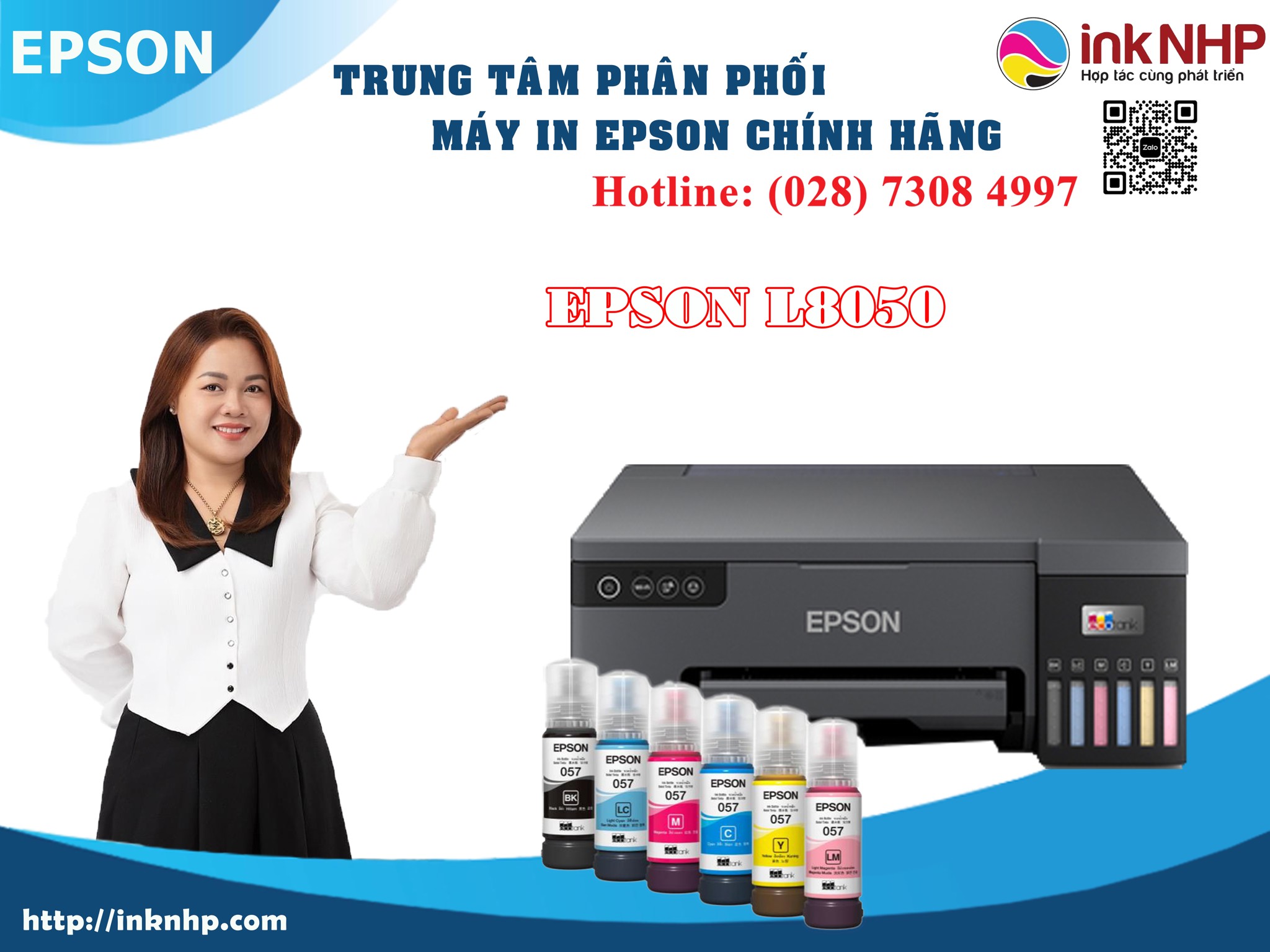 Máy in Epson EcoTank L8050 in ảnh sắc nét, tốc độ cao, tiết kiệm chi phí với hệ thống mực liên tục chính hãng. Mua chính hãng tại Mực in Nguyễn Hợp Phát – Giao hàng toàn quốc.